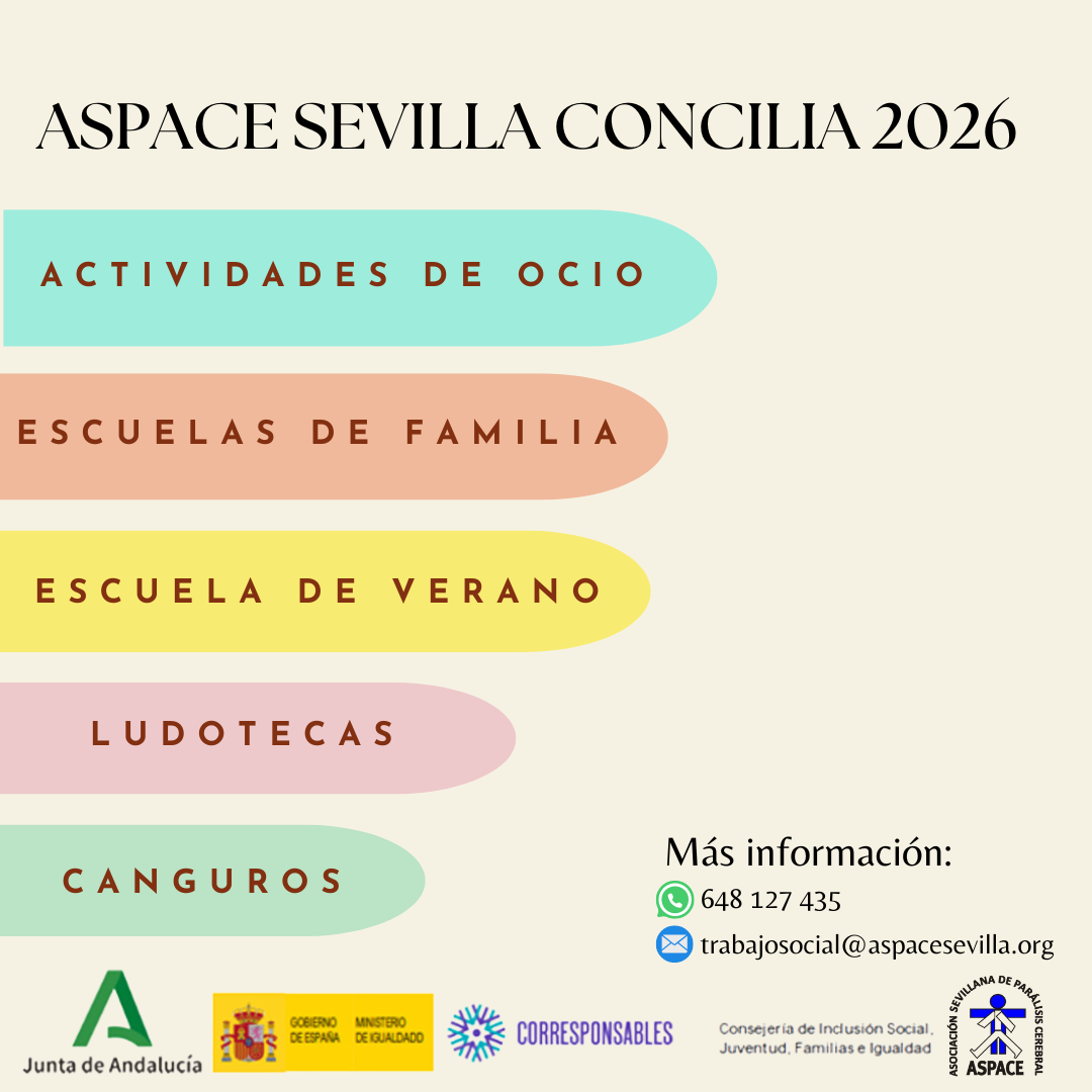 - El Programa Concilia de ASPACE Sevilla ha sido subvencionado por la Consejería de Inclusión Social, Juventud, Familias e Igualdad a través del Plan Corresponsables.